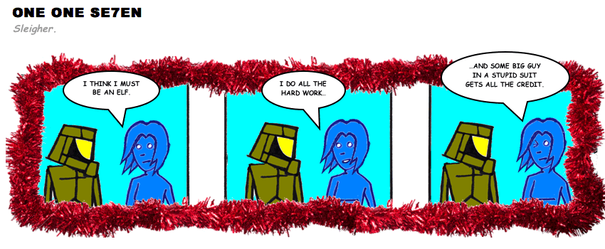 On April 30, 2003, Stuntmutt began turning in episodes of a new comic known as One One Se7en. We'll present them here, in the order in which they were submitted, as they come in. New submissions were added Monday, Wednesday, and Friday. On March 3, 2008, One One Se7en was retired from regular releases - Stunt's life got a tad too busy for 3 strips per week. (He still comes by with new content when the situation arises, however.)