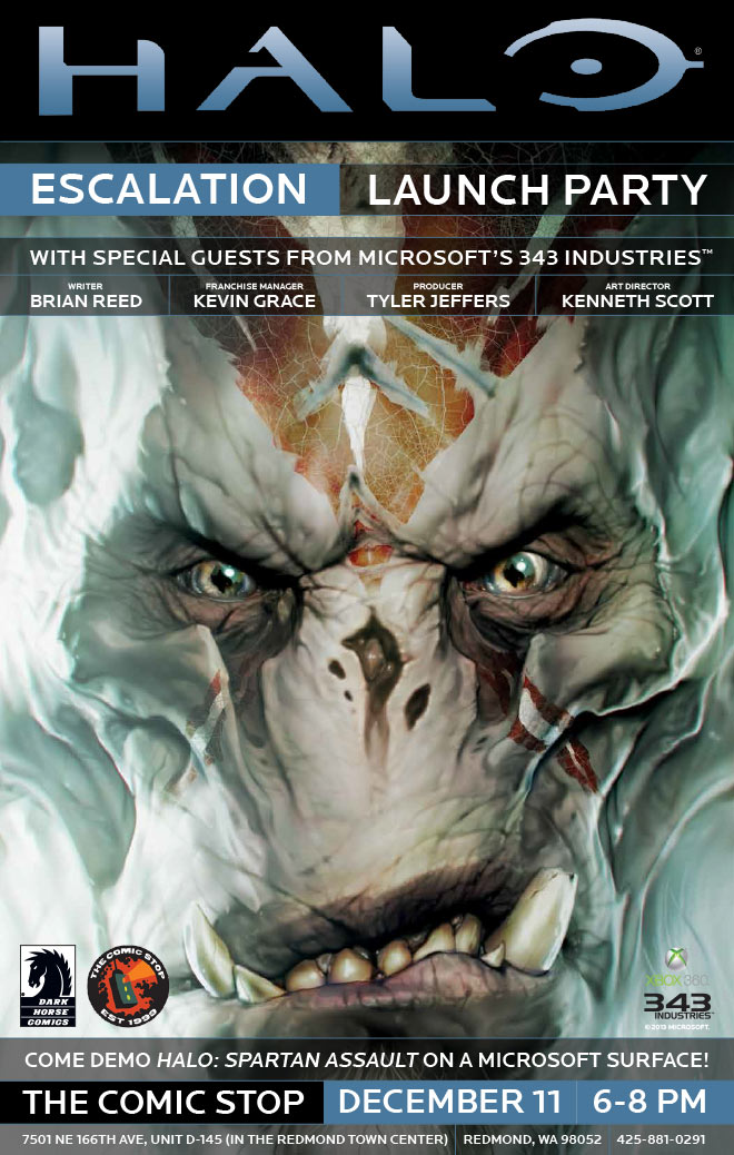 This past July at San Diego Comic-Con, we announced that we have partnered with Dark Horse Comics in the creation of Halo: Escalation, a follow-up to the Halo: Initiation miniseries. The comic series spins directly out of the events of Halo 4, and begins when the UNSC Infinity is assigned escort duty for a diplomatic mission between the Arbiter and the Brutes. The first issue arrives in stores next Wednesday, December 11th, and we've previewed the series and first issue below.