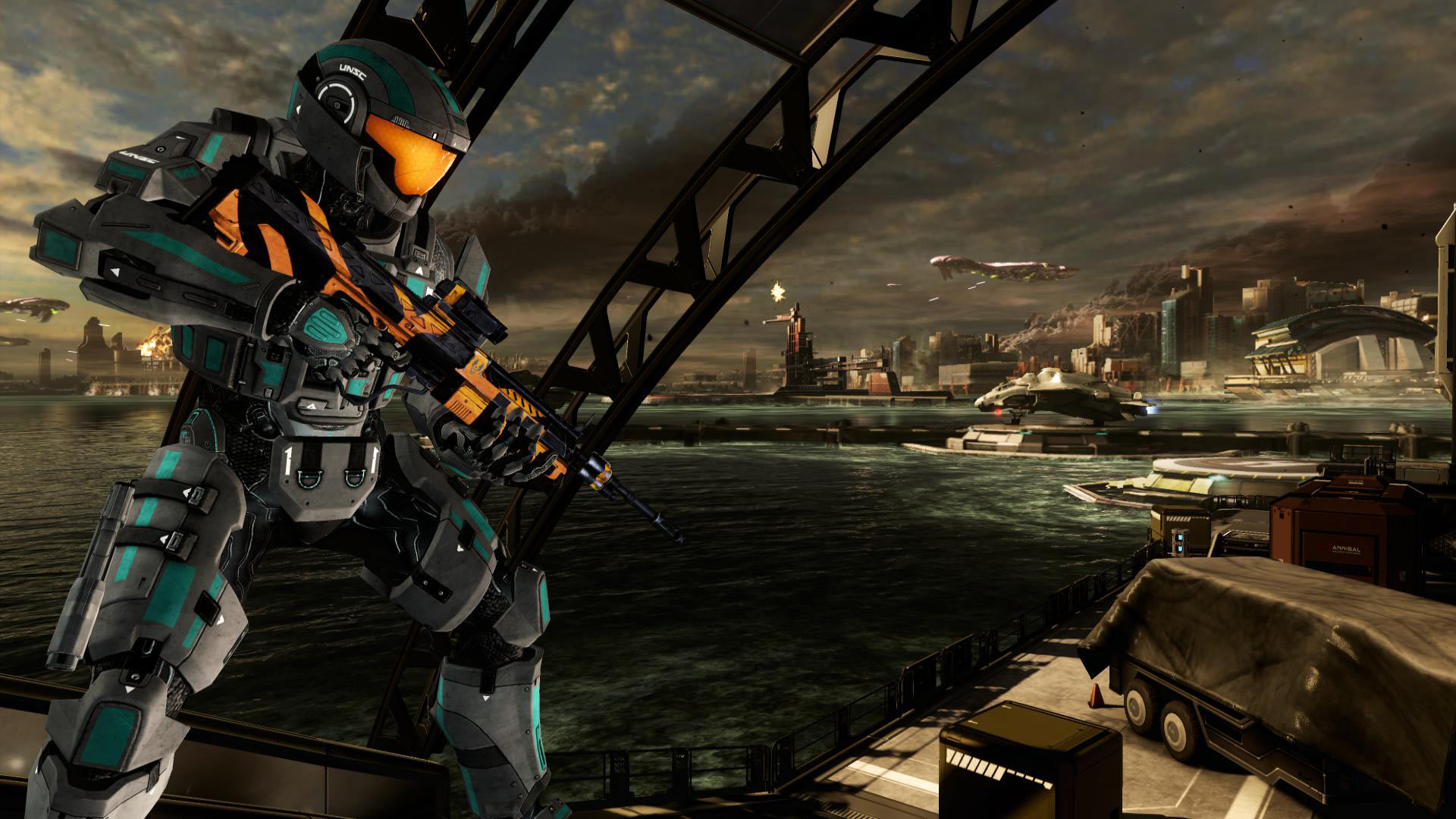 Question: What happened to the Huragok from First Strike and Vergil from Halo 3: ODST? Answer: Quick to Adjust ("Vergil") was "interrogated" by ONI for information related to what is now referred to as the Excession at Voi, but were unable to acquire any actionable intelligence before the High Prophet of Truth arrived with the Forerunner Keyship. The Huragok recovered aboard the Gettysburg met a variety of fates in the waning days of the War; the survivors were put to work on the Infinity project and at high-priority Forerunner research sites such as Trevelyan. Q: Why do the Jackals in Halo 4 look reptilian rather than avian like in previous installments? A: All of the species found within the Halo universe - even humans - show a degree of phenotypic variation, with a variety of visually distinctive populations. The visual differences of species like the Unggoy, Kig-Yar, Sangheili, or Jiralhanae that you see throughout various Halo games showcase that variety, provide a larger canvas for our amazing artists to work on, and help differentiate their roles within the Halo sandbox. Though they look more saurian than their cousins, the Ibie'shan Jackals (Halo 4) exist conterminously with the Ruuhtian Jackals ("classic"), and T'vaoan Skirmishers (Halo: Reach) as related subspecies. You will see both the Ruuhtian and Ibie'shan Jackals in Halo: The Master Chief Collection. Q: What were the unknown UNSC ships in Midnight? A: The vessels seen in Midnight are the Poseidon-class light carrier, Vindication-class battleship, and Strident-class frigate. Q: How was High charity able to get to the Ark in a timely manner? The only way it could have done so was the Voi Portal, but High Charity was much bigger than that portal. So how was it able to do this? If it went through Voi, why did the Gravemind not throw down billions upon billions of flood forms on earth while it was there? A: The Flood-infested High Charity never entered Earth's atmosphere, and did not transit the Portal at Voi. However, the Gravemind did become aware of Earth's Portal - and thus the danger that the Lesser Ark still posed to his plans - as soon as he arrived in the Sol system. His modifications to High Charity were far-reaching, both to keep the facility functioning after the departure of the Keyship, and to better serve as a mobile plagueship from which he could sing victory everlasting in a galaxy consumed of thinking life. But even with an intellect impossibly vast and deep, able to twist the technologies of the Covenant far beyond their original functionality by application of esoteric Precursor science, the ancient abomination was unable to both conduct a desperate bridging maneuver to the Ark and maintain the structural integrity of High Charity after its arrival. Q: Are Shortsword, Vulture, Longsword, Sabre and Falcon aircraft still in service as of 2557? (Excluding Spirit of Fire) A: The Longsword and Falcon remain in active UNSC service with the Navy/Air Force and Army, respectively. Without the exigencies of the Covenant War requiring every combat-worthy airframe be pressed into service, the remaining Shortsword inventory was either transferred to UNSC Air Force reserve units or scrapped, depending on their condition. The Sabre was an experimental aerospace fighter and never saw mass production, though it remains in service at ONI facilities in the Sol system (and elsewhere, unofficially); it's enduring legacy can be seen in the upgrade packages fitted to the contemporary Broadsword strike fighters and Longsword interceptors. The Vulture had largely disappeared from UNSC inventories due to irreplaceable combat losses by 2545, but Materials Group is currently evaluating the possibility of restarting production (albeit with the benefit of improved materials and incorporation of new technologies). Note that even within the timeframe of the Covenant War some vehicle saw less prevalent use than others depending on the peculiarities of the battlespace, logistical realities, and availability of qualified operating personnel. Q: 10 years ago, we were faced fighting a Covenant armada who just found Earth. On November 11, we get to revisit that siege and course of events in Halo 2. To my knowledge, Halo fiction has never said how the Covenant found Earth (even though it was by accident). Will we ever get an explanation in fiction or could we get the answer now? A: Two elements of the Covenant learned of Earth's location separately. One was the High Prophet of Truth, who was amassing a sizable invasion force at Unyielding Hierophant. The other was the High Prophet of Regret, leading his personal relic-hunting fleet from aboard the Solemn Penance. We will soon be answering how one of these elements learned the location of Earth. Q: What exactly is MJOLNIR GEN2's power system? We have clear answers for that question for Mark IV through Mark VI and some plausible data about the last GEN1 project, Mark VII but GEN2 is just kind of…there. Specifically, what kind (Fusion, Plasma-Fusion Hybrid, something Forerunner?) and where are the power supplies located? The chest pieces have sometimes seemed vague on this. They appear to have a dual reactor set on the back but some sets, Venator in particular, seem a bit impossible that this is the case with how tiny the 'packs' are. A: All Mjolnir GEN2 suits use a compact fusion reactor installed in the back of their torso carapace. Note that illustrations in the Halo 4: The Essential Visual Guide are simplified for purposes of clear presentation, and should not be considered prescriptive. Q: Does the Sharquoi still exist in the Halo Universe or is its mention in the Conversations of the Universe now considered nothing more than a left over from earlier plans? If it is still canon, what is its role and can you give us any details on the creature's behavior and/or origins? A: They still exist, though we cannot yet disclose specifics. Q: What's the deal with Ralph-303's unusually high service numbe